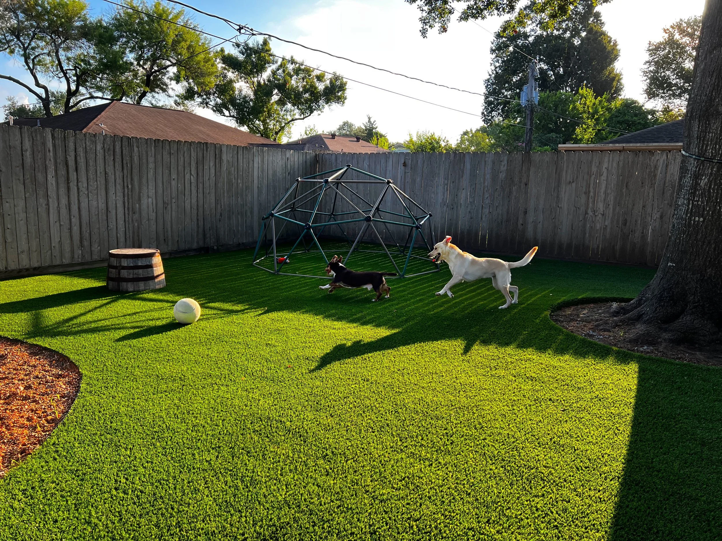 Our home-based boarding facility is perfect for pets who like the comforts of home while also the amenities of dog daycare. We have a great yard with fun play structures, a stylish and comfortable interior that invites pets to lounge on furniture, and a dedicated daycare room for pups who need to play in smaller groups or just take a break, snooze, and watch some puppy tv on the big screen.